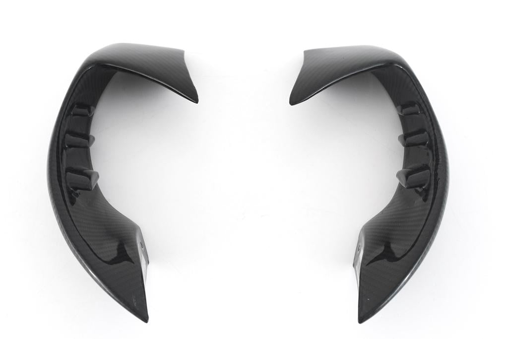FullSix carbon fiber WINGLETS are structural components used in professional racing to redirect air flow and produce downforce. Developed in the wind tunnel and tested on the race track. Considering a 27kg downforce at 200 kp/h and a mean look the bike will perform better at corner exit and will develop higher stability on acceleration. Made to fit OEM fairings. All fitting material is supplied.